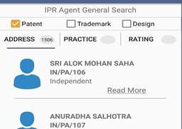 Appen giver information om indiske registrerede IPR-fagfolk med forskellige filtreringsmuligheder.