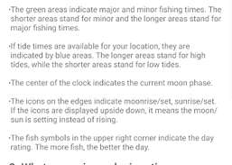 Denne app tilbyder en letlæselig solar fiskekalender, tidevandstider og sol/måne information til at planlægge dine fisketure