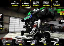 Kør over 60 licenserede monstertrucks såsom BIGFOOT, USA-1, Boogey Van, Outback Thunda, Virginia Beast tanks, Traxxas RC lastbiler, og opgrader din motorudstødning, indsugning, affjedring og transmission for at følge med konkurrenterne.