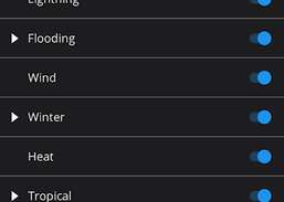 -- Push-alarmer er GRATIS for mere end 100 typer vejralarmer, inklusive alt fra tornado-advarsler til advarsler om vinterstorm, tåge, brand, vind og tropiske storme. Se en komplet liste i advarselsindstillingerne.