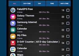 App ofte anvendte oplysninger, adskilt efter tid og ugedag.