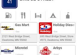 * Find steder for gas, mad, logi, camping, seværdigheder og apotek langs din rejserute