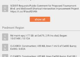 South Carolina 511-mobilapplikationen giver realtidsadgang til trafik- og rejsendeinformation leveret af South Carolina Department of Transportation (South Carolina DOT). Kort viser aktuelle trafikforhold samt hændelser og anlægsbegivenheder, der kan påvirke trafikken på alle mellemstatslige, amerikanske og statslige ruter. DMS, HAR, alarm og vejrinformation er også tilgængelig. Kortet angiver placeringen af vejkameraer, som giver brugerne mulighed for at se de aktuelle trafikforhold. Når brugere bevæger sig gennem motorvejsnettet, kan appen holde styr på deres placering på kortet. South Carolina DOTs Twitter-feeds er også tilgængelige og giver information, der påvirker trafikken på tværs af statens regioner.
