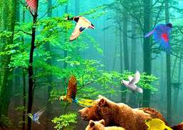 Ein entspannender Wald mit echten Vögeln, die Animationen fliegen..