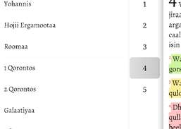 Oromiffa-Bibel (Macaafa Qulqulluu) auch conatians Strongs Konkordanz, Suche, Höhepunkt und Versbildeigenschaften.