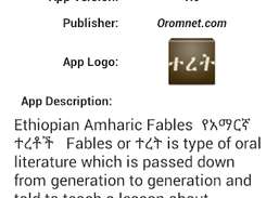 Äthiopische Amharische Fabeln Fabeln oder ist eine Art mündlicher Literatur, die von Generation zu Generation weitergegeben wird und erzählt wird, um eine Lektion über etwas zu erteilen. Es sind in der Regel Kurzgeschichten, die eine moralische Lektion veranschaulichen oder vermitteln und gleichzeitig unterhaltsam sind. Die Botschaft der Geschichten kann leicht verständlich sein oder unterschwellig versteckt sein, um es herauszufinden. Die erzählten Geschichten könnten von Tieren handeln, die wie Menschen sprechen und handeln können, oder Pflanzen oder Naturgewalten. Die Tiere oder Pflanzen könnten sich bewegen und auch sprechen und die Naturgewalten bewirken aufgrund ihrer Stärke, dass Dinge in der Geschichte passieren. Es ist ziemlich unmöglich, einen historischen Ursprung für Fabeln zu finden. Daher finden sich in vielen Kulturen einige Fabelgeschichten mit einer kleinen Wendung in der Geschichte; So ist zum Beispiel die Fabel von der Schildkröte und dem Hasen auf der ganzen Welt beliebt. Wir, die Entwickler von OromNet PLC, hoffen, dass Sie es genießen werden, sie allein, aber auch mit Ihrer Familie, Freunden und vor allem mit Ihren Kindern zu lesen. In dieser App finden Sie Fabeln, die in der amharischen Sprache allgemein bekannt sind. Einige der Geschichten sind auch in anderen Sprachen zu finden. Sie können Ihren Favoriten auf Facebook, Twitter, WhatsApp, Viber und anderen Social-Media-Sites mit Ihren Freunden und Followern teilen. Wenn Sie per SMS (Textnachricht) senden möchten, ist dies auch mit dieser App möglich. Mit der einfachen Navigation dieser App können Sie navigieren, kopieren und mit Ihren Lieben teilen. Nach dem Download funktioniert sie offline. Bitte bewerten Sie unsere App im Google Play Store. Vielen Dank für das Herunterladen, OROMNET Software and Application Development PLC, Nekemtie, EthiopiaContent Bewertung: Jeder