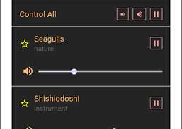 Wählen und mischen Sie aus über 35+ Umgebungsgeräuschen, die inkl. Donner und weißes Rauschen
