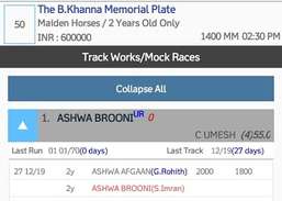 Der Pferdename BAR wird mit den letzten 5 Platzierungen unter Pferdename, Wertung, Alter, heutigem Gewicht, Auslosung und Zulage geladen. Ein kurzer Blick vor der Geschichte des Pferdes