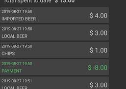 Diese benutzerfreundliche App ist für die Ausführung auf einem Tablet konzipiert, das neben der Bar zurückgelassen wird. Mitglieder können ihre Registerkarte erstellen und ihr Elemente hinzufügen (Ausgaben erfassen). Der Barmanager kann dann ganz einfach den Tab aller sehen.