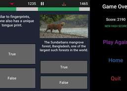 General Quiz 2019 is a knowledge base True or False Trivia Quiz game. There are 16 specific topics to answer. Each topic has around 25 questions to answer & you will have 25 seconds for each question. It would be a great way to spent time with your friends & family & have fun. See who can answer the most in the first try!1. General Knowledge on Animals