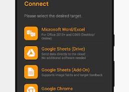 Scan-IT to Office is ready to use in just a few steps: this data acquisition app is paired to the desired document by scanning a QR code. Captured bar-codes, text, images, timestamps, numbers or location data are automatically sent to the associated target documents.