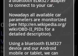 This application is an OBDII ECU diagnostics tool that uses a bluetooth ELM327 adapter to connect to your car.Nowadays all available car parameters are monitored (see http://en.wikipedia.org/wiki/OBD-II_PIDs for a detailed description).Using a bluetooth ELM327 device and our Android mobile or tablet, we can check the car sensor values.Main window shows speed and RPM. Also, if GPS is present, that window will show current GPS position and GPS-speed.At the bottom, detailed sensor information is shown (and updated every second).Compatible ELM327 adaptors can be found at any automobile shop and online webs, i.e. http://s.dealextreme.com/search/elm327This application stores all data in the SD, in a folder called OBDii_ELM327.Recent changes:+ speed is shown as MPH instead of Km/h+ fixed some errors (thank you so much to the users for their reports)Content rating: Low Maturity