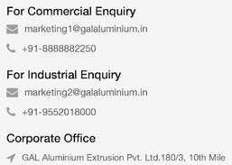 GAL Aluminium Extrusions Pvt. Ltd. Especificaciones