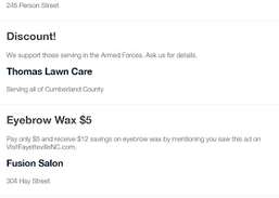 Cuando se selecciona la preferencia fuera de la base, ScoutLook se transforma en una guía de bolsillo para familias civiles en las comunidades de Fort Bragg.