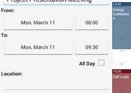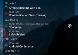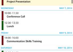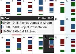 Business Calendar es una aplicación de calendario completa que se sincroniza con sus calendarios de Google. * Vista de varios días con desplazamiento suave y zoom (de 1 a 14 días) * Presentación gráfica y textual * Vista de mes, agenda, día y evento * Aparece rápidamente / calendarios usando la barra de favoritos * función de búsqueda * widgets configurables en diferentes tamaños para vista de mes, semana, agenda y día * cambio fácil entre las barras de la línea de tiempo y los títulos de eventos en la vista de mes * nueva opción de manejo intuitiva: simplemente mueva el dedo durante algunos días de interés en la vista de mes para abrirlos en la vista de varios días * descripción general rápida del día al agregar un nuevo evento * muchas opciones para eventos recurrentes (por ejemplo, para agregar un evento recurrente que tiene lugar cada dos semanas los martes y jueves) * sensible al contexto sistema de ayuda para optimizar su trabajo con Business Calendar Esta es la versión gratuita de Business Calendar, contiene anuncios (no intrusivos) en algunas vistas, ¡pero es completamente funcional! Aun así, la versión de pago sin publicidad ofrece algunas características adicionales: * dragandamp; modo de caída en la vista de varios días para mover y copiar eventos * opción para vincular un contacto a un evento * tamaños de fuente configurables para la aplicación y los widgets * Opción para seleccionar calendarios individuales para cada widget * Recordatorios propios del calendario comercial ¡No mueva la aplicación a la tarjeta SD si desea utilizar los widgets (limitación general del sistema operativo Android)! La aplicación depende de los recordatorios de la aplicación de calendario estándar asegúrese de no haberlos desactivado si desea recibir mensajes de alarma para sus eventos (la versión paga también incluye recordatorios del propio calendario comercial) Cambios recientes: - cambios de compatibilidad para Android 4.0 (Ice Cream Sandwich) - algunos cambios más y errores Calificación de contenido: Todos