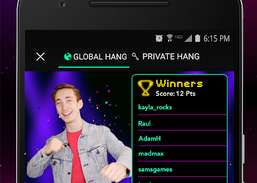 Pidä hauskaa kilpaillen ystäviisi tai vastaan satunnaisia vastustajia trivia-peleissä, tietokilpailuissa, näytöksissä ja muissa Hangtime-ohjelmissa