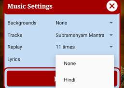 Toista mantra , 11, 21, 28, 51, 108 kertaa asetuspainikkeesta -andgt; musiikkiasetukset.