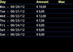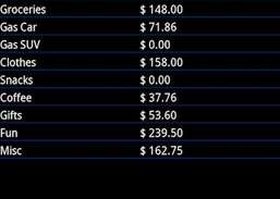 Nickel Tracker -sovelluksen avulla voit saavuttaa andquot; budjetointijärjestelmä Android-mobiililaitteellasi. Tämä sovellus on erinomainen nykyaikaiselle budjettitietoiselle henkilölle, joka haluaa luoda budjetin ja pitää siitä kiinni yksinkertaisesti laitteella, jota kannat mukanasi kaikkialla. Nickel Trackerin avulla voit syöttää kaikki päivä-, viikko- ja kuukausikulut suoraan matkapuhelimeesi koko päivän, kun teet ostoksia. Voit antaa omat seurattavat luokat ja lisätä sitten viikko- ja kuukausirajat kullekin luokalle. Kun saavutat viikko- tai kuukausirajasi luokassa, se muuttuu PUNAISEKSI, mikä osoittaa andquot; envelopeandquot; on tyhjä. Lähetä itsellesi kuukausittainen yhteenveto CSV (Excel / laskentataulukko) -muodossa. Nickel Tracker on ilmainen ja tulee aina olemaan ilmainen. Rekisteröintiä ei vaadita.