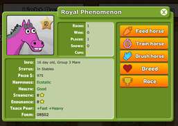 Gagnez de l'argent supplémentaire en élevant vos étalons. Les joueurs VIP peuvent vendre leurs chevaux sur le marché, voir les statistiques avancées des chevaux, équiper des selles et plus encore ...