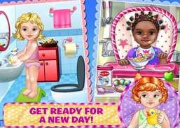 Tout d'abord, il est temps d'habiller votre bébé avec style. Choisissez parmi des dizaines de coiffures, tenues, grenouillères, robes, jeans, tétines amusantes, accessoires et jouets ! Maintenant, elle est prête à manger.