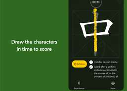 पात्र स्क्रीन के ऊपर से गिरते हैं - अंक अर्जित करने के लिए आपको उन पर टैप करना होगा और उनका सही ढंग से चित्र बनाना होगा। बस उन्हें नीचे तक पहुँचने मत दो, या - काबूम! उनमें से पांच को गिरा दें और खेल ख़त्म हो जाए! लेकिन सीखना जारी है; आप जो कुछ भी देखा, उसकी समीक्षा कर सकते हैं, स्ट्रोक ऑर्डर आरेखों और अपनी गति से परीक्षण के साथ पूरा कर सकते हैं। जिन पात्रों पर आपने सबसे अधिक गलतियाँ की हैं, उन्हें सूची के शीर्ष पर हाइलाइट किया गया है।
