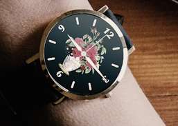विंटेज फूल चित्रों को शामिल करने वाले सुंदर घड़ी के चेहरे के डिजाइनों की एक श्रृंखला पेश करना