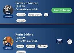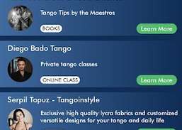 TangoPartner.com आप जहां कहीं भी जाते हैं, एक नजदीकी टैंगो मित्र ढूंढने में आपकी सहायता करने के लिए यहां है। बस अपने क्षेत्र के हज़ारों समान विचारधारा वाले टैंगो प्रेमियों के माध्यम से स्वाइप करें और अपने पसंद के लोगों के लिए एक कैबेसियो (नृत्य का निमंत्रण) दें। स्थानीय मिलोंगा में एक ग्लास वाइन साझा करें और एक सुंदर टांडा नृत्य करें।