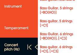 एल्गोरिथ्म को बास गिटार की ध्वनियों को सबसे प्रभावी ढंग से पहचानने के लिए अनुकूलित किया गया है। स्वचालित ट्यूनिंग का सर्वोत्तम परिणाम प्राप्त करने के लिए, एकल स्ट्रिंग पर ध्वनि को कुछ बार चलाएं।