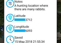 GPS शिकार ट्रैकर एप्लिकेशन Google मैप्स एंड्रॉइड एपीआई v.2 में चित्रित एक उत्कृष्ट उपकरण है जो आपको अपने शिकार स्थानों, मार्गों, शिकार को बचाने और प्रबंधित करने में मदद करेगा और आपको इन शिकार स्थानों और मार्गों पर नेविगेट करने में मदद करेगा। आवेदन आपको अपने शिकार मार्गों को रिकॉर्ड करने और समीक्षा और विश्लेषण के लिए उन्हें बचाने देता है। सहेजे गए शिकार मार्गों के लिए आप अपनी वर्तमान स्थिति से शुरुआत, अंत तक और निकटतम बिंदु पर नेविगेट कर सकते हैं। आप प्रत्येक स्थान के लिए एक मार्कर के रूप में मानचित्र पर सभी शिकार स्थानों और मार्गों को पूरी तरह से देख सकते हैं और प्रत्येक शिकार मार्ग के लिए दो लाइन (मार्ग की शुरुआत में पहला और अंत में आखिरी) से जुड़े दो मार्कर हैं। इसके अलावा यह ऐप आपको एक चुंबकीय कम्पास प्रदान करता है, आप निर्देशांक का उपयोग करके एक पता पा सकते हैं, आप मानचित्र पर क्लिक करके निर्देशांक और पता पा सकते हैं और आप निर्देशांक का उपयोग करके या मानचित्र पर क्लिक करके सीधी रेखा में दूरी पा सकते हैं। इसके अलावा आप निर्देशांक (देशांतर और अक्षांश), गति, ऊंचाई, असर, पूर्ण पता (सड़क का पता, राज्य, ज़िप, देश, आदि) प्राप्त कर सकते हैं और वास्तविक समय में जीपीएस प्रदाता का उपयोग करके मानचित्र पर अपने वर्तमान स्थान को देख सकते हैं।