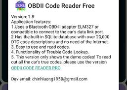 OBDII Code Reader Free विनिर्देशों