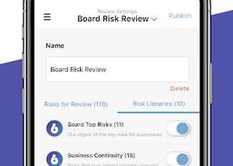 - ESAME DEI RISCHI DEL CONSIGLIO DI AMMINISTRAZIONE E DEI DIRIGENTI. Utilizza l'app 6clicks per semplificare le revisioni dei rischi, inclusa l'identificazione e la valutazione dei rischi, a livello di consiglio di amministrazione ed esecutivo. Trai vantaggio dall'attingere alla saggezza di esperti pertinenti in tutta l'organizzazione, guidando la consapevolezza, il coinvolgimento e approfondimenti attuabili in tempo reale.