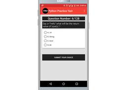 Pratica per Python Certification Practice Test App ed esegui un test di simulazione per prepararti per il tuo esame e più di 120+ domande con risposte.