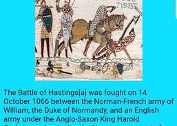 La battaglia di Hastings[a] fu combattuta il 14 ottobre 1066 tra l'esercito normanno-francese di Guglielmo, duca di Normandia, e un esercito inglese..