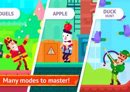 Bowmasters è un gioco colorato, divertente e stimolante. L'obiettivo è mirare e sparare al tuo avversario. Usa l'angolo retto e la quantità di potenza per colpire il nemico da una certa distanza, usando diversi tipi di personaggi e armi .