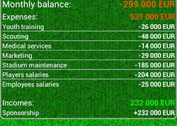 Decidi diversi aspetti della tua squadra, tra cui finanze, formazione giovanile, trasferimenti, contratti di sponsorizzazione e molto altro! Vinci le tue partite per guadagnare la fiducia del tuo presidente e dei tuoi tifosi. Ti piacciono le sfide? Perché non prendi il controllo di una delle squadre della divisione inferiore e con essa raggiungi la vetta? O mettere alla prova le tue capacità manageriali con una squadra più debole di un paese più piccolo? Affronterai numerose difficoltà, come possibili aggressioni dei tuoi fan e persino offerte di corruzione! Questo è come... il vero calcio! Riesci a maneggiarlo? :)