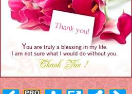 Grazie Greeting Card Images è un'app Android gratuita tutto ciò di cui hai bisogno per dire grazie per le cose grandi e piccole. Sfoglia la nostra raccolta di messaggi personalizzati di cartoline di ringraziamento e invia biglietti di auguri a chiunque con un solo tocco dal tuo telefono cellulare.