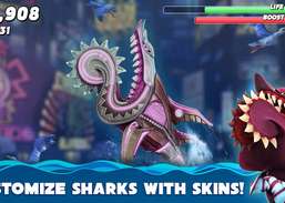 Kontroller en hai i et matvanvidd og spis deg gjennom mange hav mens du koser deg med alt fra små fisker og fugler til smakfulle hvaler og uvitende mennesker!