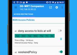 Funksjoner (noen av dem er kanskje ikke tilgjengelige i gratisversjonen): Den støtter både privat nøkkel og passordbaserte SSH-autentiseringsmetoder. Selvfølgelig er slik sensitiv informasjon kryptert lokalt og forlater aldri mobilenheten din. Trafikkovervåking (sanntids- og månedlige trafikkdata) + deling med detaljert daglig oversikt. Liste over verter koblet til ruteren + varsler. Wake on LAN (WOL)-støtte. OpenVPN, PPTP VPN. WiFi QR-koder: nå trenger du ikke lenger dele WiFi-passordet ditt med gjestene dine. Bare del den genererte QR-koden, og de kan koble til umiddelbart (forutsatt at de bruker en kompatibel QR-kode-skanner-app). Handlinger på ruteren: omstart, fabrikkinnstillinger, sikkerhetskopiering / gjenoppretting. Verktøykasseverktøy: nettverksdiagnoseverktøy (f.eks. ping, traceroute, nslookup). Kommandoer: gi alle kommandoer til ruteren din eksternt, og hent utdataene. Hjemmeskjermwidgeter. Vær oppmerksom på at denne appen ikke er tilknyttet det offisielle DD-WRT-prosjektet.