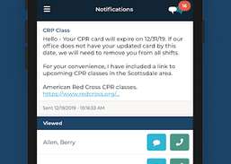 Veilige communicatie voor uw verpleegkundigen, planners en backoffice die aanvoelt als sms'en. Met onze HIPAA-compatibele app kunnen werknemers rechtstreeks vanaf hun telefoons en desktop communiceren, documenten delen en afbeeldingen en video's maken.