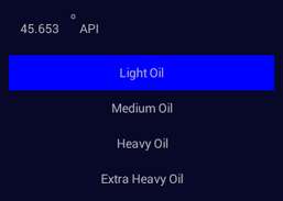 + Bereken het aantal vaten ruwe olie per ton uit API Gravity of selecteer een vloeistof uit de vooraf geladen vloeistofdatabase om de berekening uit te voeren