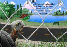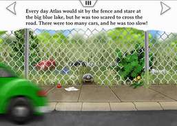 Geanimeerde, interactieve verhalenboek over een schildpad die wil om de weg over te steken .