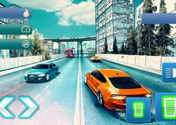 Rij met je supersnelle sportwagen op snelwegwegen met veel verkeer