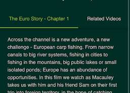 Carpers Yard também tem seu próprio serviço de streaming de vídeo sob demanda. Aqui, você pode transmitir instantaneamente uma variedade de vídeos de pesca exclusivos, incluindo vídeos informativos e educativos, bem como vídeos de pesca de desafio e aventura. O conteúdo é continuamente lançado no aplicativo.