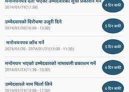 Este aplicativo facilita o rastreamento fácil do local / centro de votação do eleitor, detalhes do programa eleitoral, contagem de eleitores, informações do eleitor, informações do candidato, resultados das eleições, educação do eleitor e mídia sobre a próxima eleição no nível local e futuras eleições no Nepal. Ele também fornece um sistema de rastreamento de eventos baseado em SMS para autoridades eleitorais e para os eleitores verem seu centro / local de votação.