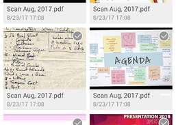 Capture slides de apresentações suspensas, notas de reuniões, quadros brancos, cartões de visita e recibos comerciais em um simples clique.