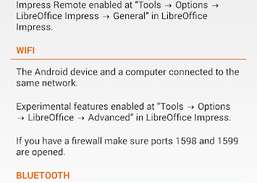LibreOffice Impress Remote Especificações