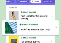 ЭКОНОМЬТЕ ДЕНЬГИ. Сохраняйте предложения от розничных продавцов для последующего использования в представлении «Предложения». Получайте уведомления, когда истекает срок действия сделок.