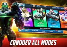 Сразитесь с лучшими бойцами-роботами среди 100 миллионов игроков WRB в захватывающих глобальных многопользовательских битвах. Превратите легендарных Атома, Зевса и самых любимых чемпионов в могущественных 1-, 2-, 3- и 4-звездочных роботов, чтобы выиграть по-крупному в Versus Leagues andamp; Глобальные турниры. Возглавьте списки лидеров, завоюйте титул чемпиона и станьте абсолютным чемпионом мира по боксу среди роботов.