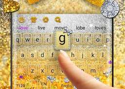 3D Gold Glitter Keyboard Theme med otroliga 3D studsande diamanter animationseffekter kommer helt uppdatera din telefon