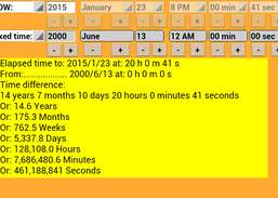 Förfluten tid / Tidsnedräkning Tidskalkylator Visar tid och datum i rätt platsvärde